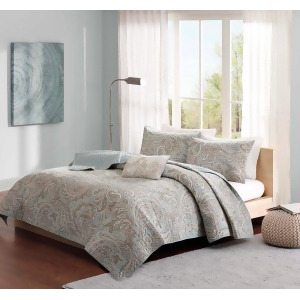 Ronan 4 Piece Coverlet Set Full/Queen by Madison Park The Madison Park Pure Ronan Collection creates an organic look and feel to your space. The soft blue is the perfect base for this updated paisley design, while a solid blue reverse complements the top of the bed to create a restful oasis in your bedroom. Printed on 200 thread count cotton, this set includes a coverlet, two shams and one decorative pillow.