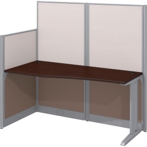 Create an efficient, organized workspace in a matter of minutes with the Bush Business Furniture Office in an Hour 65 W x 33 D Cubicle Workstation. The office desk combines a thermally fused laminate surface with sturdy steel legs to resist scratches, stains and damage. In addition to the desk, the workstation includes one 48 H and two 63H cubicle panels, along with all necessary hardware. These metal-framed panels are covered by stylish two-tone fabric. The desk and cubicle panels include adjustable levelers to compensate for uneven floors. A convenient cable management system features desktop grommets and removable panels in the metal legs for organizing cords. Turn open spaces into efficient offices with this compact workstation that can be completely assembled in less than an hour. This collection can easily expand into multiple desk configurations as your business grows and accepts a convenient Storage and Accessory Kit to keep all of your items in order. Solid construction meets ANSI/BIFMA standards for safety and performance. Commercial quality backed by the Bush Business Furniture 10 Year Manufacturer's Warranty. Features65 W x 33 D Desk features durable thermally fused laminate surfaceTurns open space into efficient work environmentSturdy metal-framed panels covered by stylish two-tone fabricIncludes full-height 63 H panels for privacy and short 48 H panel for communicationDesigned for a quick, easy installation with all hardware and cubicle panels includedDesktop grommets and removable panels on metal legs for cable managementAdjustable levelers compensate for uneven floorsAccepts Storage and Accessory Kit, Articulating Keyboard or Deluxe Articulating Keyboard TrayMeets ANSI/BIFMA quality test standards for performance and safetyCommercial quality backed by 10 Year Manufacturer's WarrantySpecificationsWidth: 64-1/2 in.Depth: 32-1/4 in.Height: 63 in.Weight: 176 lbsType: Full FabricFrame Color Family: GrayColor: MochaStyle: Straight WorkstationMaterial: Laminate Over WoodFrame Material: SteelCollection: Office-in-an-HourPartition Style: Non-Powered Without BaseWarranty: 10