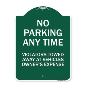 This is a 18 x 24 heavy gauge aluminum sign designed for long lasting outdoor use. The sign is manufactured with radius corners and has precut mounting holes for easy installation. Proudly Manufactured in the U.S.A. by SignMission. Our aluminum products are made from commercial grade corrosive free aluminum specifically rated for outdoor usage for years of maintenance free life in the harshest environments. Our signs will last as long as your business! These signs have pre-punched mounting holes for easy installation. Signs mount to U-channel posts, square or round galvanized posts, wooden posts, all flat surfaces and chain link fences. Signs help protect your business from legal issues and lawsuits while protecting your staff and customers by providing a safe environment. FeaturesHeavy-Gauge Aluminum Architectural SignSigns have rounded/burr-free corners for safe handling and use which provide a professional and architectural appealSigns help protect your business from legal issues and lawsuits while protecting your staff and customers by providing a safe environmentExtremely Durable: SignMission Aluminum products are made from commercial grade corrosive free aluminumProtect Your Business & MunicipalityMade in the USASpecificationsColor: Green & WhiteDesign: No Parking Anytime Violators Towed AwayDimension: 1 H x 18 W x 24 LWeight: 3 lbs