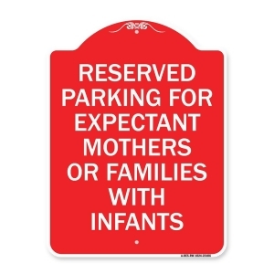 This is a 18 x 24 heavy gauge aluminum sign designed for long lasting outdoor use. The sign is manufactured with radius corners and has precut mounting holes for easy installation. Proudly Manufactured in the U.S.A. by SignMission. Our aluminum products are made from commercial grade corrosive free aluminum specifically rated for outdoor usage for years of maintenance free life in the harshest environments. Our signs will last as long as your business! These signs have pre-punched mounting holes for easy installation. Signs mount to U-channel posts, square or round galvanized posts, wooden posts, all flat surfaces and chain link fences. Signs help protect your business from legal issues and lawsuits while protecting your staff and customers by providing a safe environment. FeaturesHeavy-Gauge Aluminum Architectural SignSigns have rounded/burr-free corners for safe handling and use which provide a professional and architectural appealSigns help protect your business from legal issues and lawsuits while protecting your staff and customers by providing a safe environmentExtremely Durable: SignMission Aluminum products are made from commercial grade corrosive free aluminumMade in the USASpecificationsColor: Red & WhiteDesign: Reserved Parking for Expectant Mothers or Families with InfantsDimension: 1 H x 18 W x 24 LWeight: 3 lbs