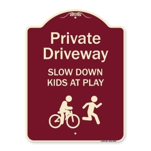 This is a 18 x 24 heavy gauge aluminum sign designed for long lasting outdoor use. The sign is manufactured with radius corners and has precut mounting holes for easy installation. Proudly Manufactured in the U.S.A. by SignMission. Our aluminum products are made from commercial grade corrosive free aluminum specifically rated for outdoor usage for years of maintenance free life in the harshest environments. Our signs will last as long as your business! These signs have pre-punched mounting holes for easy installation. Signs mount to U-channel posts, square or round galvanized posts, wooden posts, all flat surfaces and chain link fences. Signs help protect your business from legal issues and lawsuits while protecting your staff and customers by providing a safe environment. FeaturesHeavy-Gauge Aluminum Architectural SignSigns have rounded/burr-free corners for safe handling and use which provide a professional and architectural appealSigns help protect your business from legal issues and lawsuits while protecting your staff and customers by providing a safe environmentExtremely Durable: SignMission Aluminum products are made from commercial grade corrosive free aluminumProtect Your Business & MunicipalityMade in the USASpecificationsColor: BurgundyDesign: Private Driveway Slow Down Kids At PlayDimension: 1 H x 24 W x 18 LWeight: 3 lbs