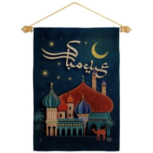 Eid al Fitr Beautiful Mini Garden Decorative Flags with Banner Pole Stand - Complete Set with Wooden Banner Dowel with String Hanger. Ornament Collection have variety of home decoration for all occasions. Uniquely design for hanging indoor or outdoor use. We are committed to offering you exceptional values. Our customers enjoy displaying our yard banner sign for longer periods. For more than a decade, weve been dedicated to manufacturing flags with no comparison in quality and beautiful designs. Our flags are made with our Pro Guard material that is soft to the touch and designs can be read correctly on the flag. A feature that our customers will love. We are committed to using eco-friendly inks that wont leave a foot print in our environment. FeaturesHappy Eid Mubarak Garden Flag Set Religious al-Fitr 13 x 18.5 in. Double-Sided Decorative Vertical Flags House Decoration Banner Yard GiftMade in USAIncludes:1 pc x Mini Garden Flag 13" x 18.5"1 pc x 1" x 15" Wood Yard Banner HardwareSpecificationsTheme: Eid al FitrPrint: Double-SidedReadable: Readable Both SidesMaterial: Weather Resistant - Double BurlapStitching: Double StitchedDisplay: VerticalHang Type: SleeveArtist: Ava StoreyCountry of Origin: USASize: 13 x 18.5. in.Weight: 0.31 lbs