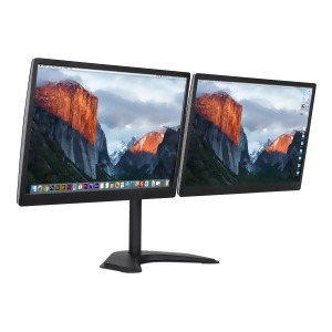 Built to be frequently used, adjusted, and enduring. The long lasting ability is thanks to its high quality aluminum steel material which makes up the majority of this mount. The weighty structure with the u-base ensure a strong bond between desk and stand. You can trust your displays in the hands of this mount. The black powder coating reinforces the steel and gives the design a modern and aesthetically appealing appearance.It does not take much for a clean and organized desk to quickly become overcrowded with screens. And we all know the more screens, the more productive, the more work, and the cycle of cluttered desks continue. Break the cycle with the dual monitor mount with its full motion capacity. Upgrading your home or office to this setup will not just provide you with a clean desk but with screens that are ergonomically more functional and adaptable.Each VESA bracket can tilt and rotate your monitors for a convenient adaptable mode. If you read long graphs or long articles, it will not be hard to turn your screens from landscape to portrait mode. Tilt the down or up to fight a bad sun glare or to make your viewing experience more comfortable. Combine with the height adjustability, angling, rotating, and swiveling for an ergonomic experience that can relieve headaches and repetitive strain injuries. FeaturesAdjustable, free standing two computer LED displays stand 20, 23, 24, 27 inch screen sizesSpecificationsColor: BlackSize: 20-27 in.Weight: 10.9 lbs