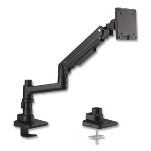 7110017256060 Gas-Spring Ergonomic Monitor Arm for 49 in. Monitors, Supports 44 lbs - Black Adjust flat or curved monitors with one-touch ease. Easy to mount with C-clamp or grommet, the arm rotates and swivels 360 with tilt adjustment. Attach arm VESA plates and ergonomically adjust for height and screen distance. Cord management system included. OEM/Compatible - OEM, Workstation Type - Desk-Mounted Sit/Stand Station, Floating Sit/Stand Station, Free-Standing Sit/Stand Station, Mobile Workstation, Traditional Desk/Table, Width Max - 49", Depth Min - 3.34". FeaturesFully articulating gas-spring monitor arm adjusts with one-touch easeArms rotate 360, tilt +/- 90, and provide 180 of swivel and monitor rotationIncludes both C-clamp and grommet installation optionsCable management system includedSpecificationsAssembly Required: Medium assembly is requiredColor: BlackDepth Max : 22"Depth Min : 3.34"Height Max : 18.94"Height Min : 7.6"Maximum Rotation Degrees : 360Maximum Tilt Degrees : 90Monitor Diagonal Max : 49"Weight Capacity: 44 lbsWidth Max : 49"