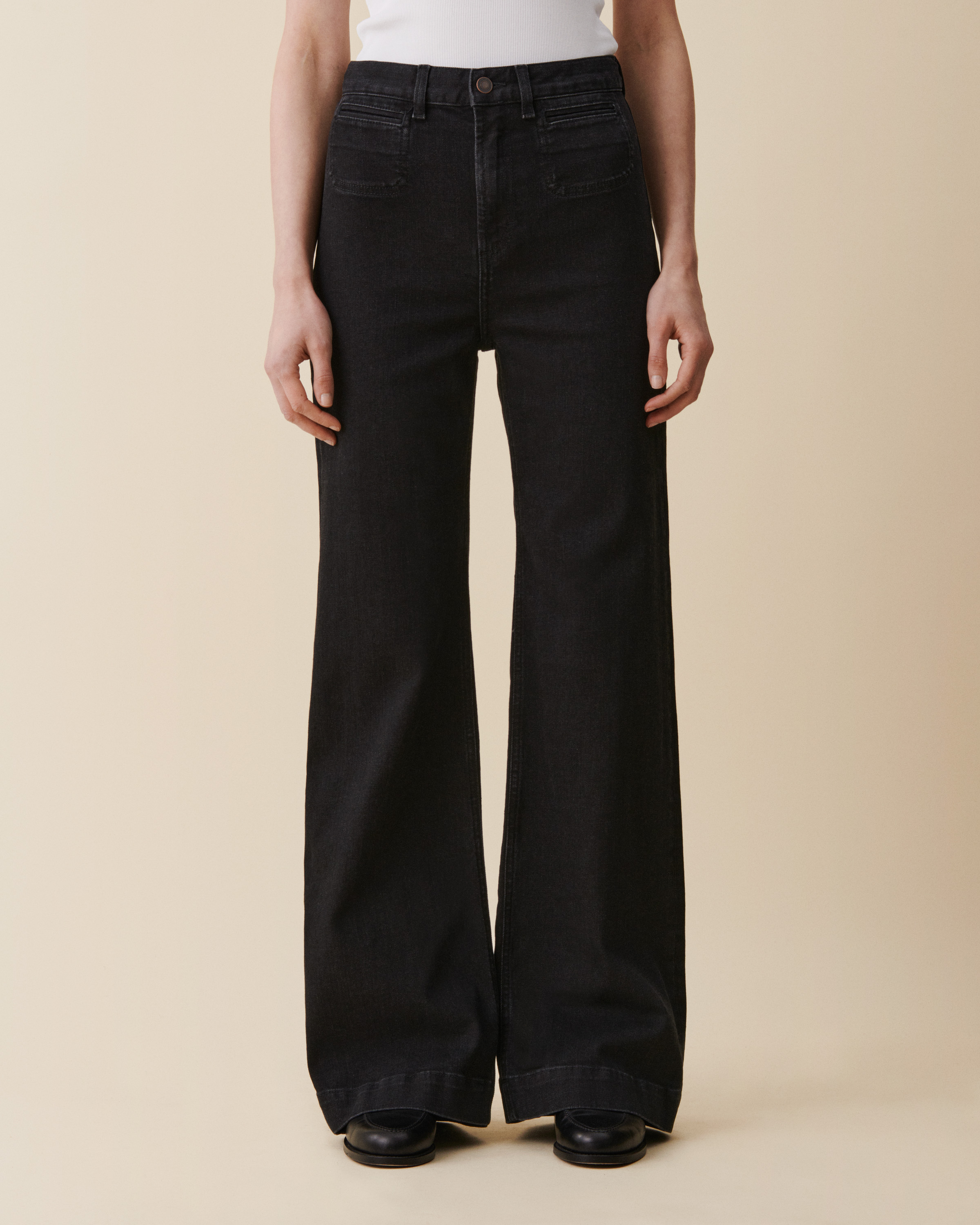 Step back into the effortless cool of the late 60s with the St Monica Sailor Flare Jeans. These high-rise wide leg jeans are a direct homage to vintage sailor archives, reimagined for the modern wardrobe. The distinctive patch pockets and dramatic flared hemlines create a unique, statement-making silhouette that commands attention. Designed with a comfortable zip fly and a high waist that elongates your legs, these jeans blend nostalgic charm with contemporary fit. We provide model measurements to help you find your perfect size, ensuring a look that's both authentic and flattering. For those who love to express their individuality through fashion, the St Monica jeans are a functional and fashion-forward cornerstone. Add this timeless piece to your collection and discover the perfect blend of retro inspiration and modern design, available now at Jeanerica.