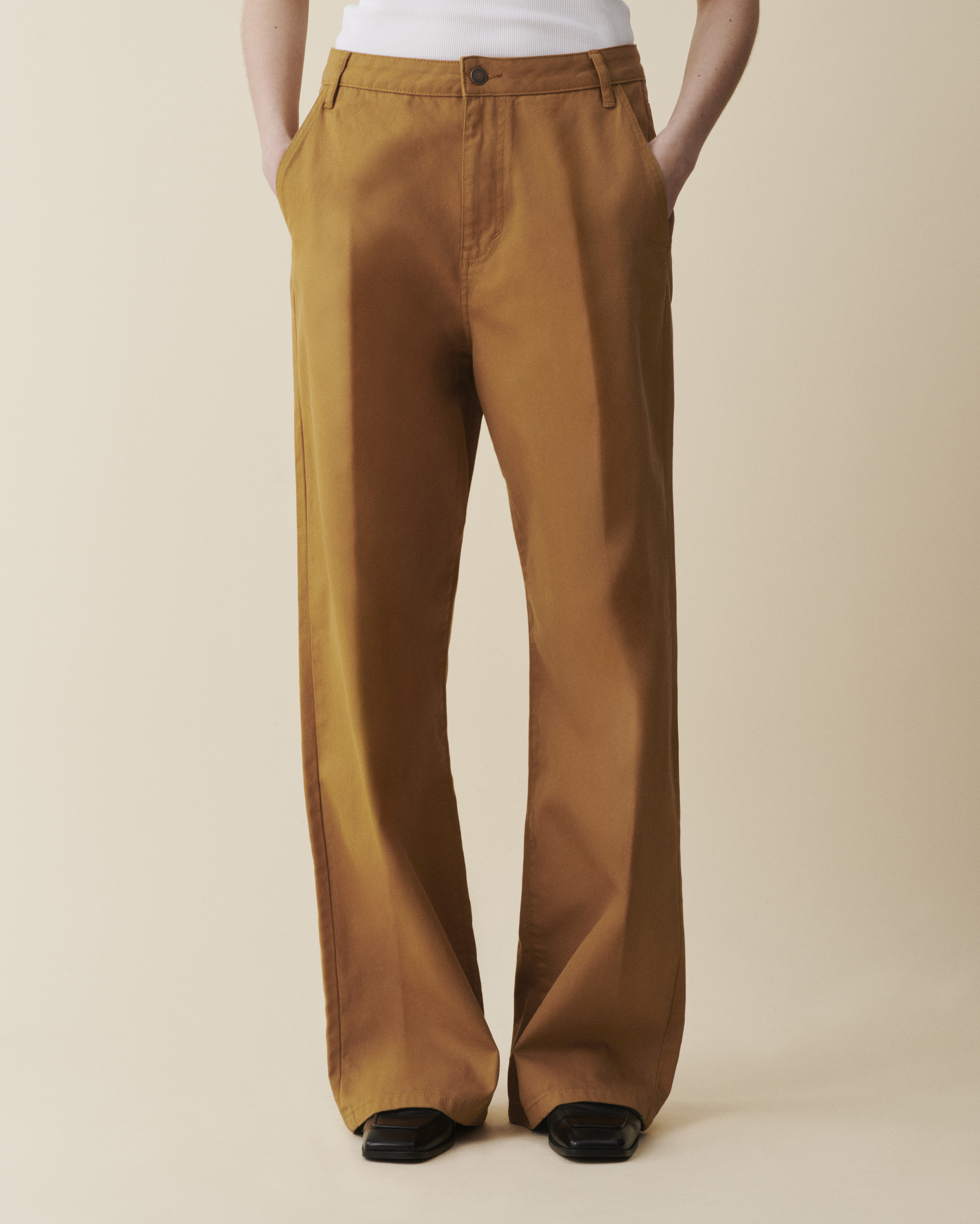 Make a statement with our Belem Chino Wide Leg Pants that blend comfort with sophisticated style. These trousers feature a unique combination of a fitted top block and generously wide legs that create an elegant drape and effortless movement. The dropped crotch design adds contemporary flair while maintaining exceptional comfort throughout your day. Crafted from quality chino fabric that offers both structure and softness, these pants provide the perfect alternative to traditional denim or formal trousers. The five-pocket design includes a chino-style front pocket that combines functionality with clean aesthetics. Ideal for those who appreciate fashion-forward silhouettes, these wide leg pants work beautifully for creative workplaces, casual gatherings, or weekend adventures. The mid waist sits comfortably at your natural waistline, creating a flattering fit that doesn't compromise on style. Whether you pair them with simple tees or layered tops, these pants add instant sophistication to any outfit. Jeanerica's attention to detail ensures these chino pants offer both durability and style that transcends seasonal trends.