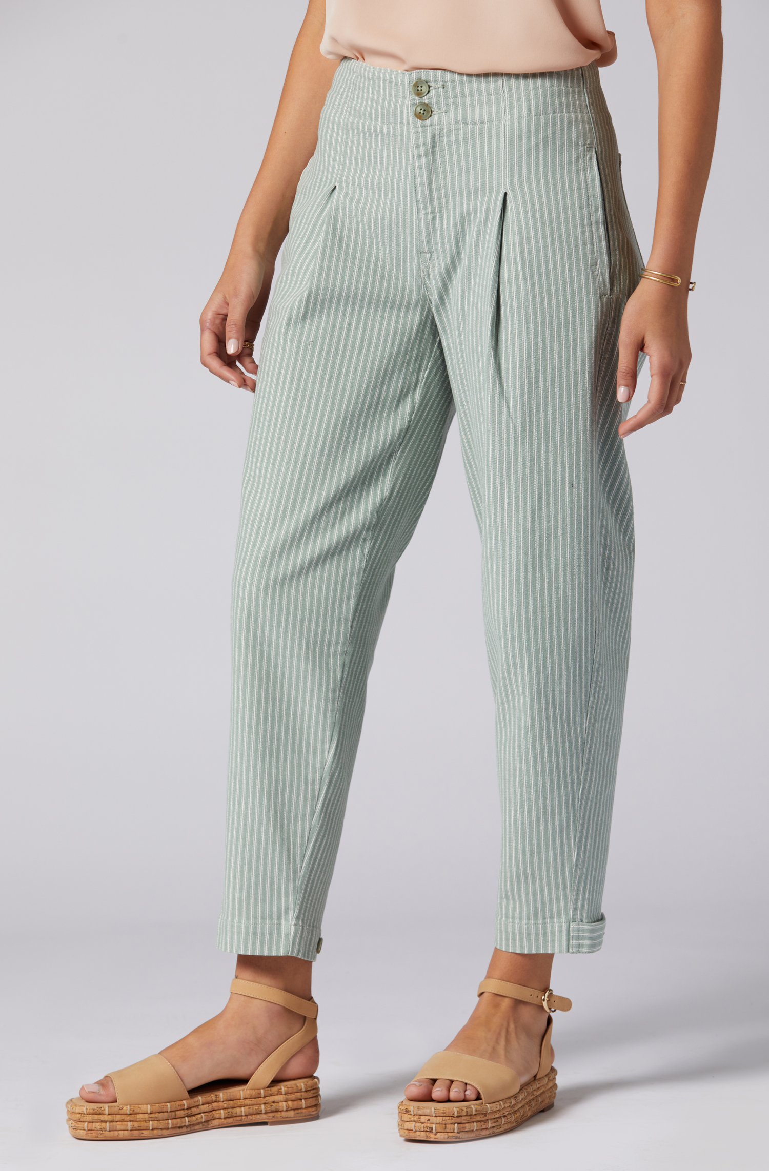 The Cordelia offers a unique silhouette that tapers down from the hips to the ankle, creating a slightly loose and slouchy appearance at the hips and thighs and gradually narrowing down the leg. This trendy and modern style provides both comfort and a fashion-forward edge to elevate your casual outfits.