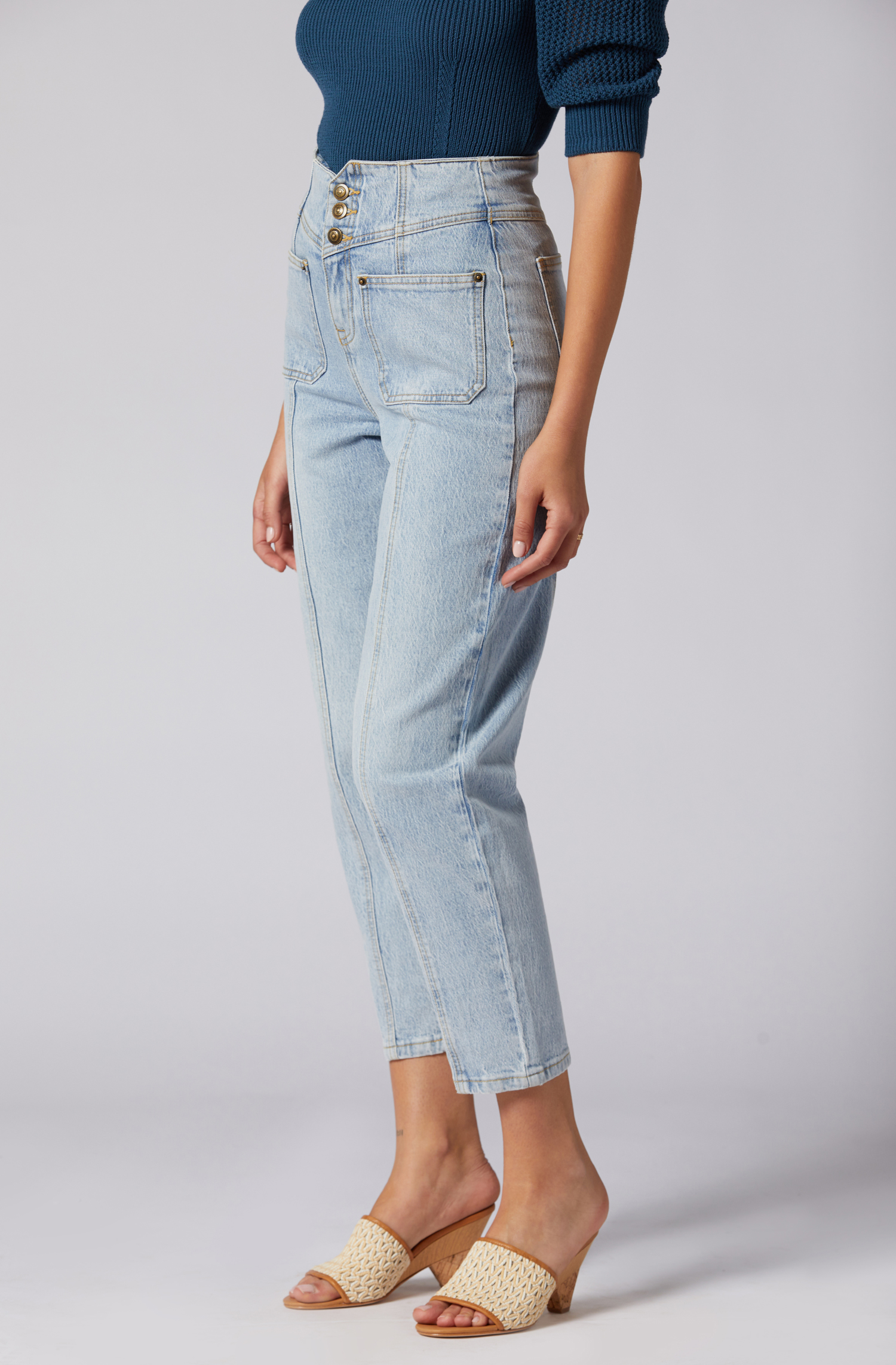 Joie Millicent Jean High waist, relaxed fit, and a cropped leg; The Milicent gives off Mediterranean getaway vibes. From your favorite striped tee to any of our eyelet cotton tops; this design can make you feel adventurous in the best way possible.