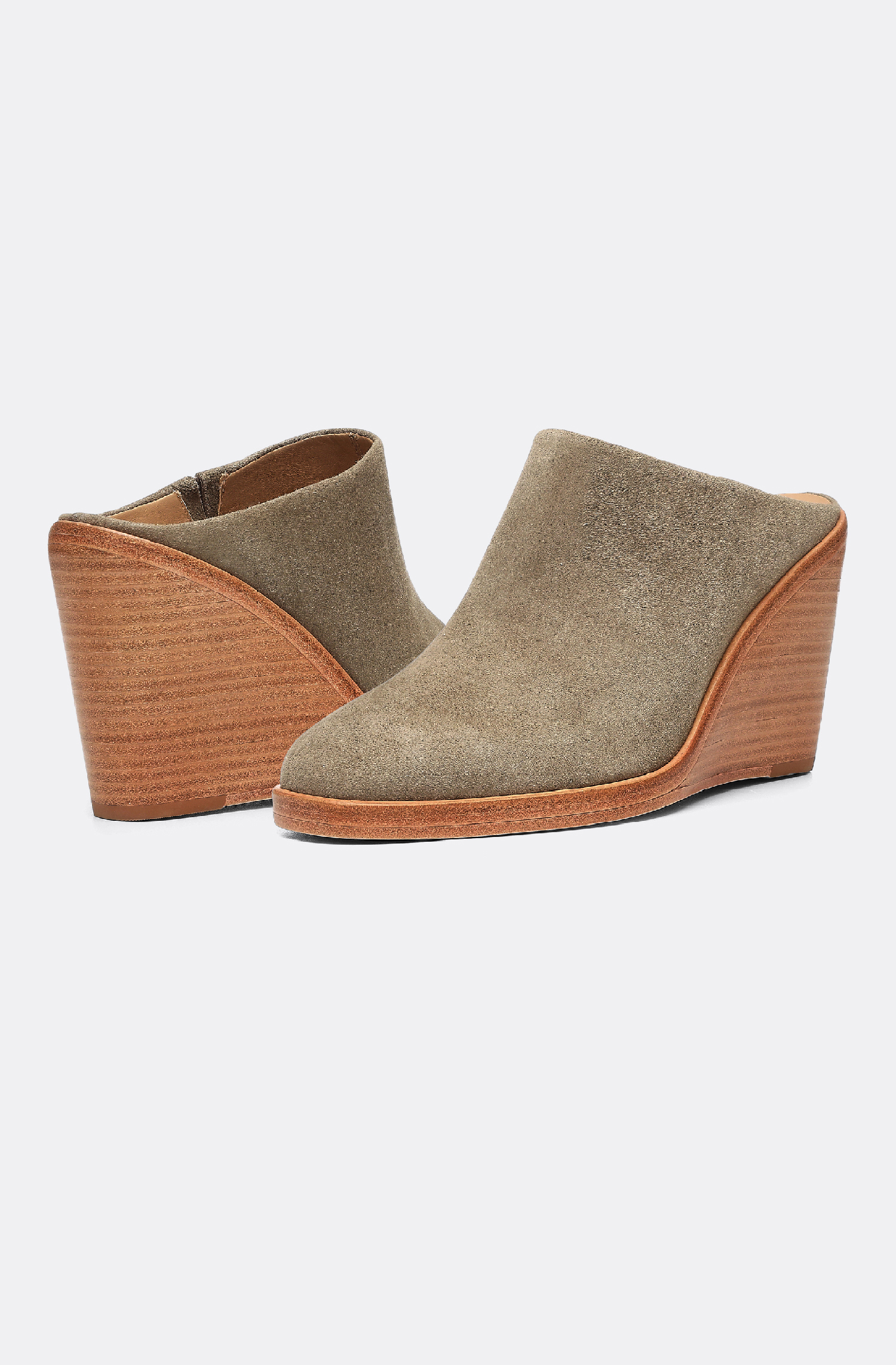 Introducing The Breana wedge mule featuring a squared toe, suede exterior, and leather lining for maximum comfort and durability. These mules are stylish, versatile, and perfect for any occasion.