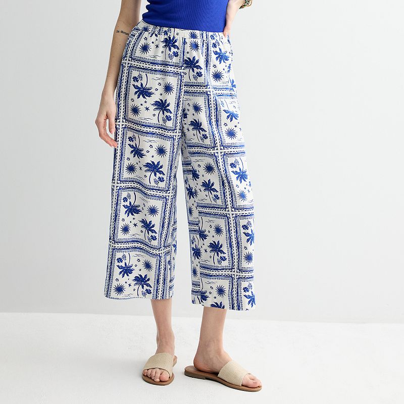 Enjoy the relaxed feel and construction of these petite Sonoma Goods For Life cropped easy pants. Click on this WOMEN'S GUIDE to find the perfect fit and more! - https://www.kohls.com/feature/womens-fit-guide.jsp. FEATURES: 2 front pockets & 2 back pockets, Pull-on styling, Soft handfeel construction. FIT & SIZING: Petite fit, 22-in. inseam, Leg opening measurement varies by size, High rise sits at the natural waistline, Relaxed fit through the hip and thigh, Wide leg opening, Elastic waistband. FABRIC & CARE: Linen, rayon, Machine wash and tumble dry low, Imported. Size: L Petite. Color: Blue Palm Square. Gender: female. Age Group: adult. Material: COTTON BLEND.