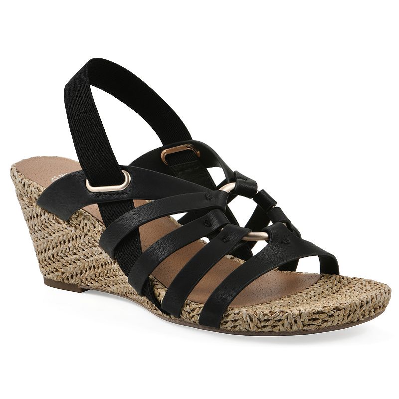 Slide into effortless style with the chic Ataps wedge sandals from White Mountain Shoes. Featuring an elastic sling back strap for a secure fit and an eye-catching ornamental center ring, these sandals combine fashion with comfort thanks to their padded insole and trendy raffia wrapped wedge. Perfect for sunny days and casual outings, you'll love how they elevate your look! Click this FOOTWEAR GUIDE to find the perfect fit and more!Slide into effortless style with the chic Ataps wedge sandals from White Mountain Shoes. Featuring an elastic sling back strap for a secure fit and an eye-catching ornamental center ring, these sandals combine fashion with comfort thanks to their padded insole and trendy raffia wrapped wedge. Perfect for sunny days and casual outings, you'll love how they elevate your look! Click this FOOTWEAR GUIDE to find the perfect fit and more!FEATURES The elastic sling back strap makes it easy to slide on and off while providing a secure fit The raffia wrapped wedge outsole features a padded insole so you can have both fashion and comfort Easy slide-on construction makes them perfect for on-the-go wearDETAILS Polyurethane upper and lining Manmade outsole Open toe Slip-on Polyurethane footbed Treaded outsole 2.5 in. heel Spot clean Imported Size: 8 Med. Color: Black Smo. Gender: female. Age Group: adult.