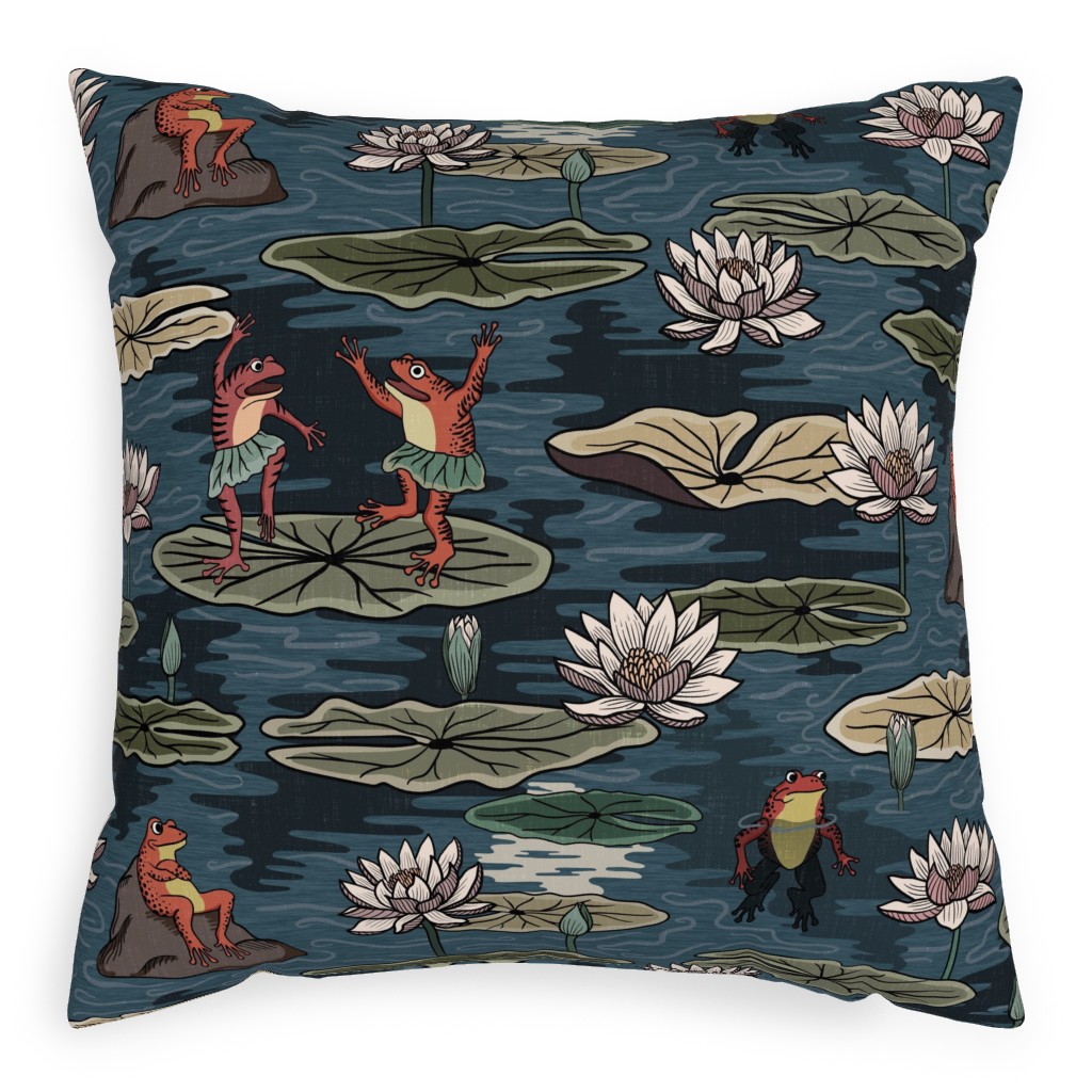 Woven Pillows: Quirky Frogs Dancing in the Moonlig...