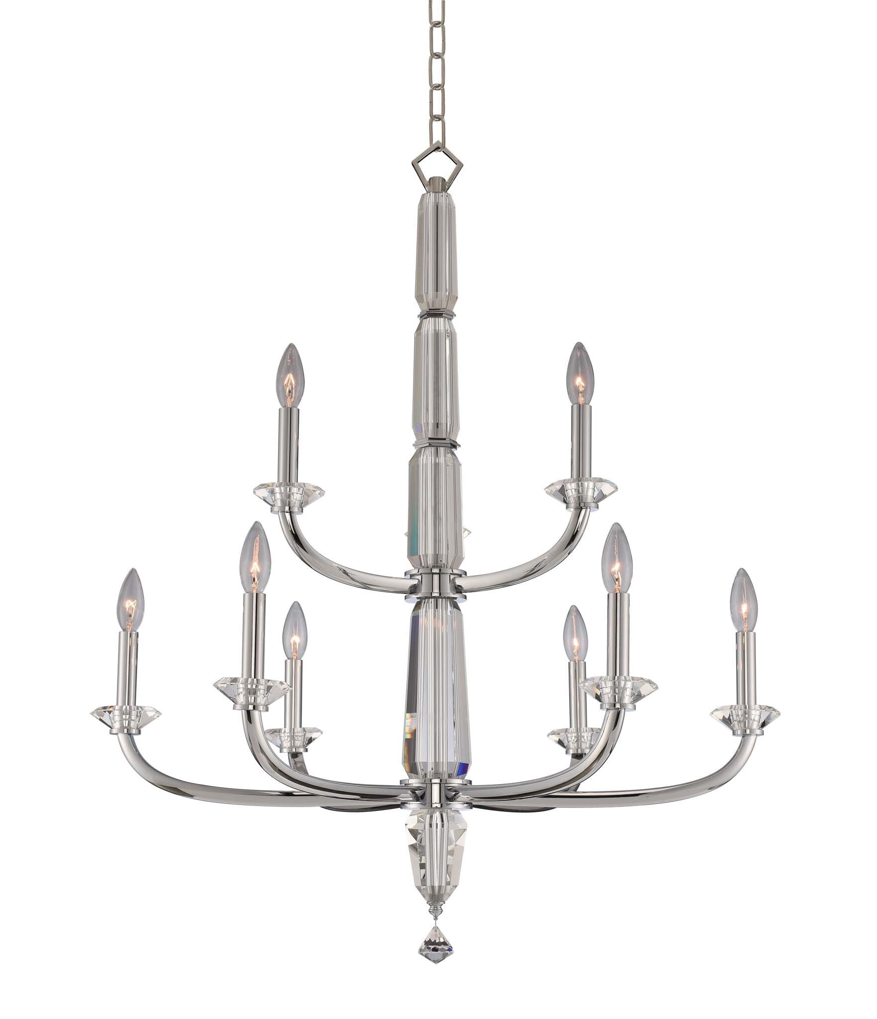 Modern chic at its finest. Bask in the warmth of the down glow produced by the snazzy design of the Webre Chandelier from ELK Lighting. Stylish metal shades circle elegantly, their openings cut with a flowing contour that offers a peek at its bulb and contrasting white walls. The vessels are tethered by coned holders and a network of contours, giving the piece an intricate, architectural feel. Clear incandescent bulbs pair perfectly with the piece, and their golden filaments produce a warm light that fills up a room. Founded in Eastern Pennsylvania in 1983, ELK Lighting designs and delivers "Lighting for Distinctive Homes." As such, the exclusive line of ELK Lighting products has extraordinary designer appeal matched by an emphasis on value and craftsmanship.