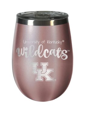 Laser etched with the Kentucky Wildcats logo, the 12-ounce Rose Gold Wine Tumbler from Great American Products features a vacuum-insulated design and spill-resistant acrylic lid. Includes: 1 tumbler 1 lid | Great American Products NCAA University of Kentucky Wildcats 12 Ounce Rose Gold Wine Tumbler