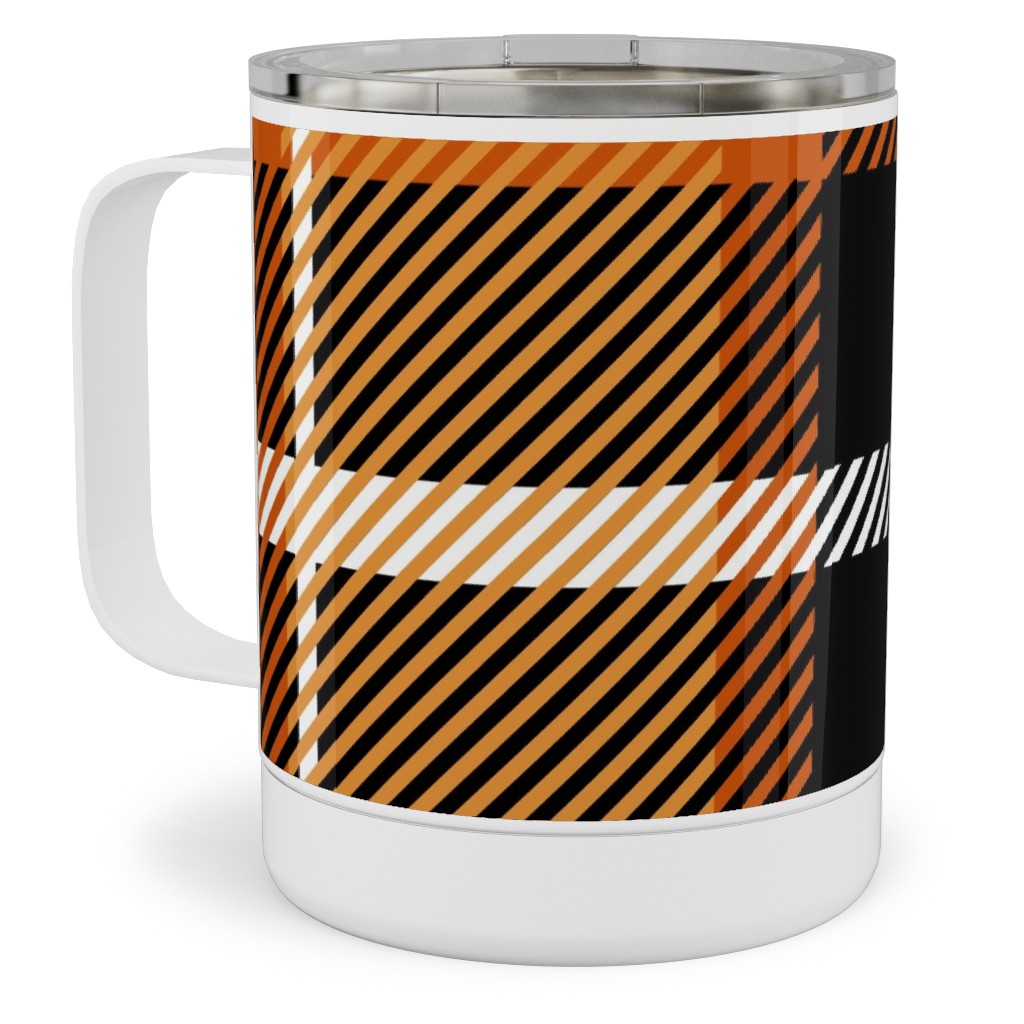 Stainless Steel Mugs: Orange and Black Plaid, 10oz...