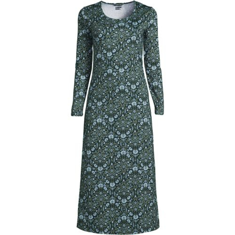 Long Sleeve Cotton Nightdress, Mid-calf Length, Wo...