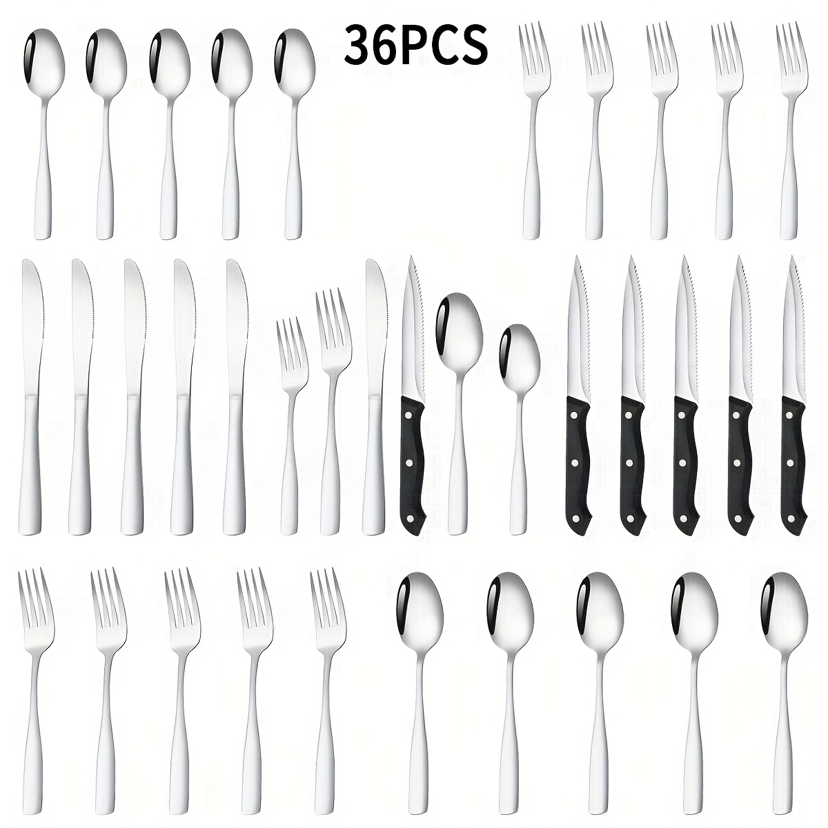 TEMU 36-teiliges Edelstahl Besteckset, Spiegelpoli...