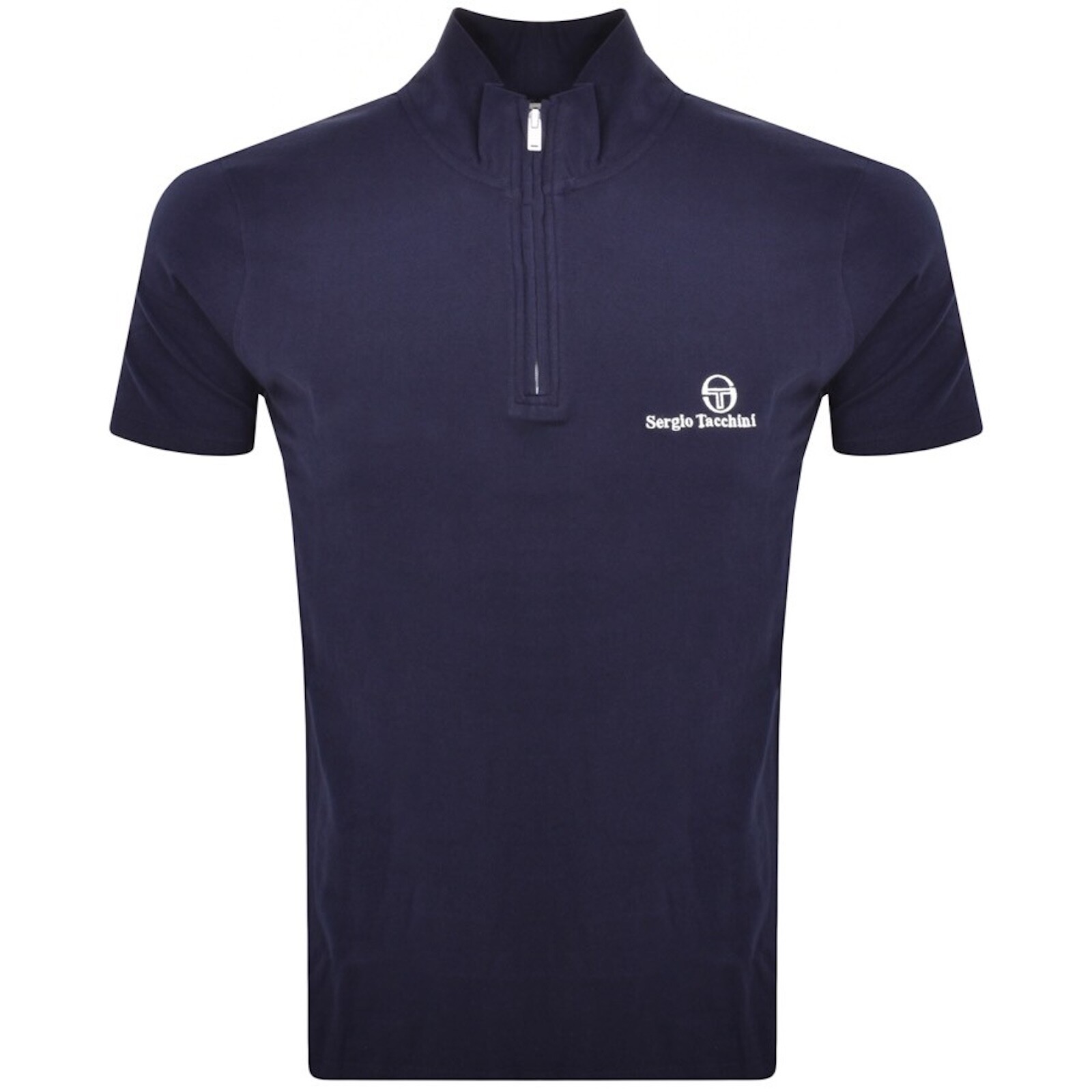 Sergio Tacchini Daytone Short Sleeve Funnel Neck Top In Maritime Blue. A branded quarter zip fastening with a funnel neck and short sleeves. The signature Sergio Tacchini logo is embroidered on the left of the chest in white. 95% Cotton And 5% Elastane.