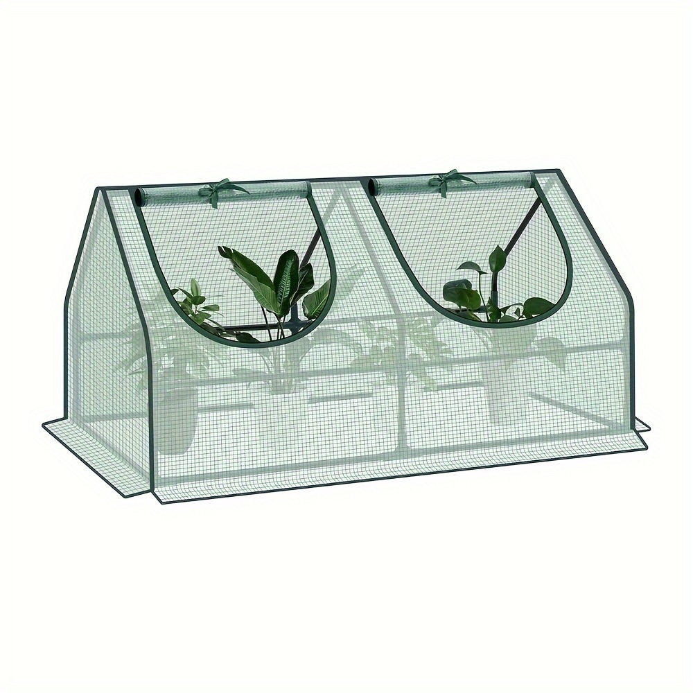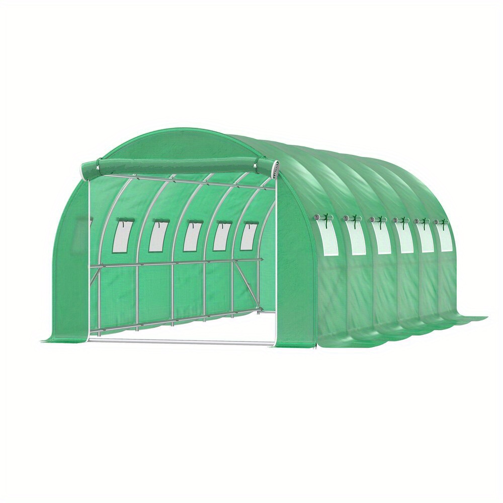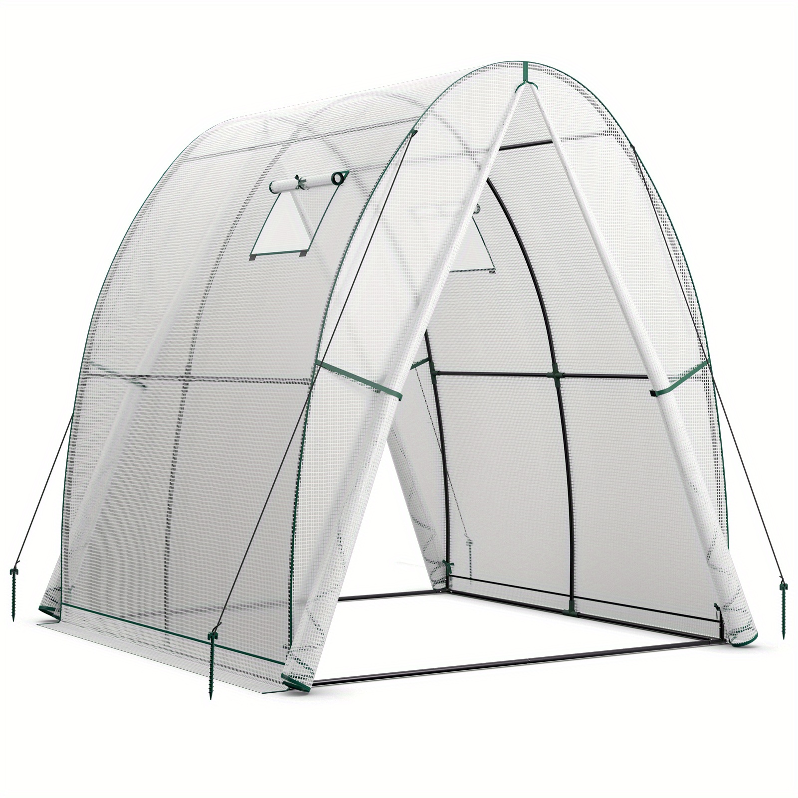 Outsunny 10'L x 7'W Outdoor Walk-In Tunnel Greenhouse, Garden Warm Hot House with Roll Up Windows, Zippered Door, and Weather Cover, White/Dark Grey. PROTECT PLANTS FROM THE ELEMENTS: Bring your plants together in a unified and protected space with our garden greenhouse. Having everything together means our portable greenhouse helps you manage and grow your plants, fruits, vegetables, and flowers. LET AND KEEP THE GOOD STUFF IN: Our two-layer 140 GSM PE cover features a reinforcement grid through the middle to prevent tearing. It protects plants from UV scorching while allowing 85% of nourishing sunlight to pass through uninterrupted. The 6 extended edges should be deeply buried in the soil to tighten the cover for more stability and against rainwater accumulation. DESIGNED FOR LONGEVITY: This plant nursery is a stable, reliable structure built after years of gardening thanks to the extra thick 1.25 round powder-coated steel tubing against chipping and peeling. The 12 ground stakes help keep the walk-in greenhouse in place. CONTROL THE EXPOSURE: The four roll-up windows of the reinforced steel greenhouse have screens that helps control the amount of heat and light that enters the hot house enter and exit quickly via the two zippered doors. YOUR PRIVATE RETREAT: The large greenhouse tent makes it easy for people to walk inside, stay comfortable, and conveniently care for and manage many plants. SpecificationsColor: White & Dark GrayMaterial: Steel, PEOverall Size: 9.8 L x 6.6 W x 7.2 HEave Height: 7.2 HWindow Size: 2 L x 2 WDoor Size: 3.6 W x 5.6 HSteel Tube Diameter: 1.25 Weight: 52.91 lbs