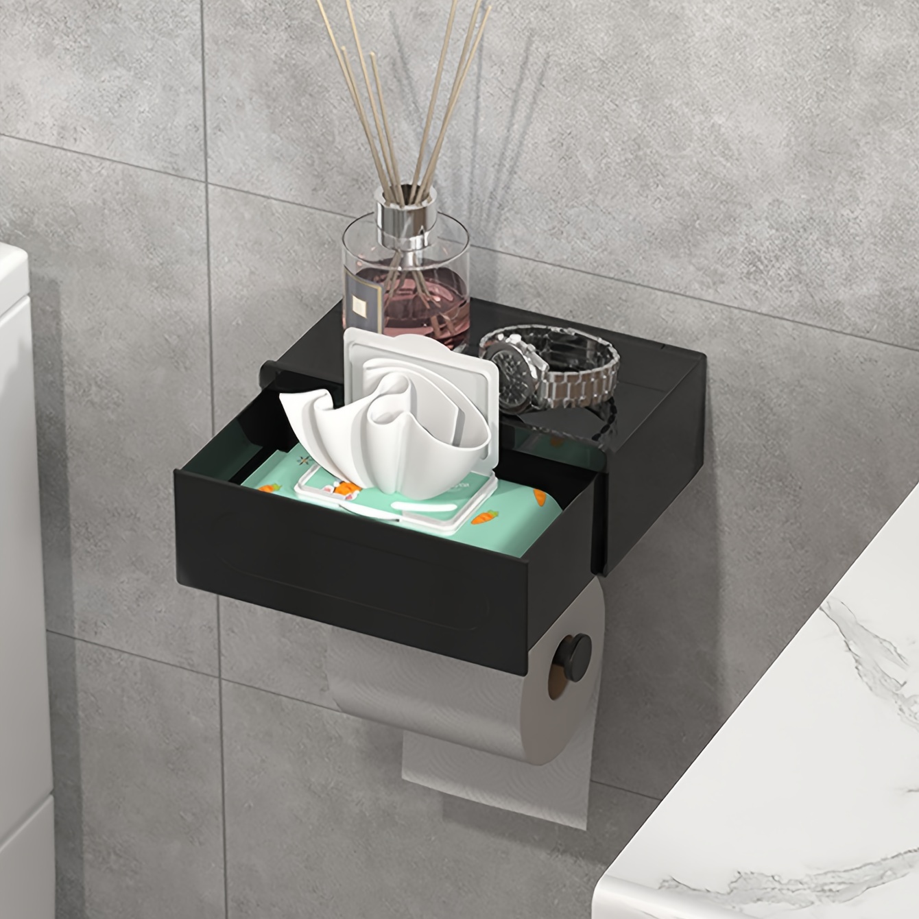 Aria series aluminum/zinc die-cast toilet paper holder with concealed mounting screws. Mounting hardware included. Easy installation. Limited lifetime warranty. Individually boxed. WARNING: Cancer and Reproductive Harm - www.P65Warnings.ca.gov