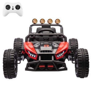 12V Kids Ride on Truck Car - Featuring dual 35W powerful motors, this kids ride on truck can drive at speeds ranging from 1.9 to 4 mph 3 to 6 km/h . The 12V rechargeable battery offers extended playtime, allowing children to gain endless fun with the added soft start function, providing a smooth acceleration. Diverse Driving Experience - Kids can use the steering wheel and pedal to drive the car independently for a realistic driving experience. Likewise, parents can take over the control with a handy remote, adjusting speed with 3 different settings. This ensures safety, with the emergency brake for peace of mind. Enjoy All-Terrain Adventures - Designed with all-terrain and puncture-free wheels, this battery powered ride on toy conquers various surfaces such as asphalt, cement, cobble roads, and grasslands. As such, children can explore and play wherever they choose, making their adventures limitless. Interactive Entertainment - This 12V ride on truck boasts bright LED headlights and searchlights 2 AA batteries are needed but not included that create an exciting feeling. Toddlers can enjoy their favorite tunes through the wireless connection, and the integrated music, horn, and engine sounds add to the excitement, making every ride enjoyable and realistic. Safe and Reliable Construction - Constructed from BPA-free material, the electric ride on truck is equipped with adjustable safety belt, lockable doors to ensure durability and safety. It complies with ASTM and CPSIA standards, serving as a reliable and perfect gift for boys and girls over 3 years old. Features2 x 35W powerful motors provide a speed range of 1.9-4 mph 3-6 km/h Allow your kid to play for a long time with a 12V rechargeable batteryKids driving mode with a child-friendly steering wheel and foot pedalParent control mode with 3 speed settings and emergency brakeFun to drive while going forward, going backward, turning left, or turning rightAll-terrain wheels with wear-resistant, anti-skid, and puncture-free featuresTraverse on the asphalt road, cement road, cobbled road, grassland, and moreSoft start function for a smooth and comfortable riding experiencePlay your child's favorite music with the wireless connectionOne-button start with built-in music play, power display, horn sound and engine soundBright LED headlights and individual searching lights enhance the overall funIntegrated charging port and equipped charger make charging a breezeSturdy and BPA-free material ensures long-lasting durabilityOpenable doors with locks, a spacious seat with safety belt for safety and comfortPerfect gift for kids aged 3+ years old on birthdays, Christmas, or other holidaysASTM compliant and CPSIA certified for increased reliabilitySpecificationsColor: PinkVoltage: 12V