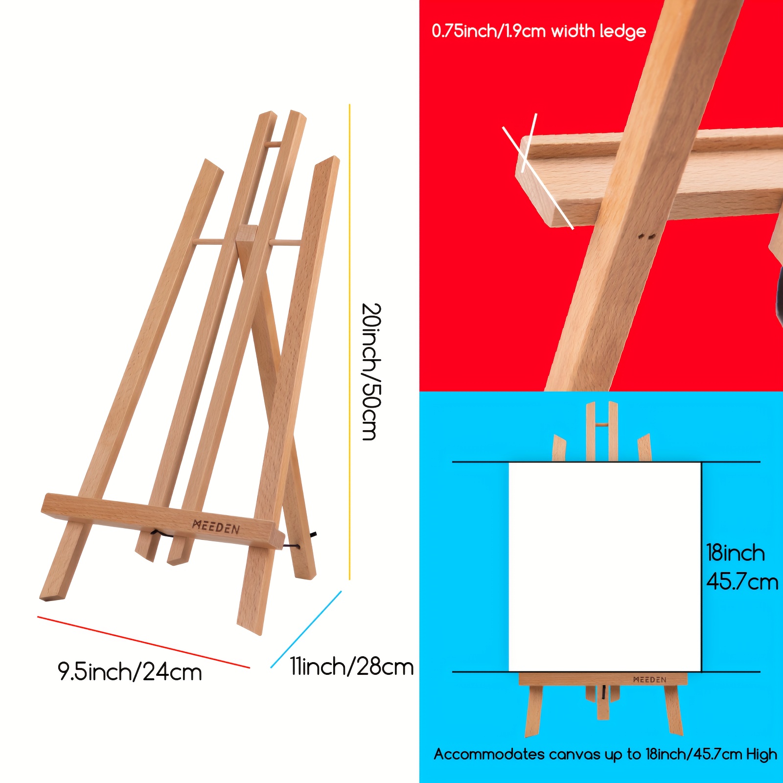 CLEARANCE - Ex-Display - Easel features minor paint marks around canvas holding points, but is in fully working condition. The easel has no packaging or instructions, but comes fully assembled. See images for details. This fully adjustable tripod easel is crafted in Ukraine from high-quality beech wood, sanded to a smooth finish and treated with linseed oil to enhance the natural wood grain. It features double canvas holders, capable of supporting canvases or boards up to 1100mm in height. The lightweight design includes non-skid metal feet for added stability. The easel can also be adjusted to a horizontal "table" position, ideal for painting or embroidery. Portable and versatile, it is perfect for both home use and outdoor plein air painting. Product Details: Delivered ready assembled Type: floor, portative, tripod Easel height: 1850mm Maximum canvas height: 1100mm Load: to 4kg Folded dimensions: 890 х 130 х 100mm Weight: 1.8kg Adjusting the tilt angle: Smooth Adjusting the workplace height: Smooth Upper clamp: Yes Wood: Beech Permeated linseed oil: Yes Made in Ukraine Made in Ukraine