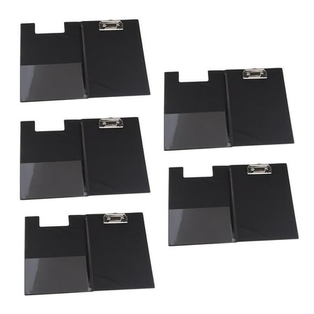 Description : Made of high quality PU leather material durable sturdy and practical . More solid environmentally friendly smooth corners feel comfortable . Apply to the A5 size paper and letter size of the documents files . 360 degree to use easy to write and check scratch and wear resistant . Ideal for Business Conference Office Meeting working Restaurant School Test field Business travel etc . Specification : Material : PU Leather Color : Black Size ( Length × Width ): Approx . 23 × 17 cm / 9 . 06 × 6 . 69 inch Package Includes : 5 Pieces Folder Note : Please allow 1 - 3mm measuring deviation due to manual measurement . Due to the different monitor and light effect the actual color of the item might be slightly different from the color showed on the pictures .