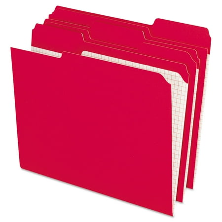 Pendaflex file folder in red color keeps important papers in a neat organized way and comes with tabs in assorted 1/3-cut positions.Pendaflex file folder in red color has double-thick reinforced tab and folder top which provide extra durability. Folders feature interior grid design which facilitates convenient note-taking.- Interior grid offers a convenient place for notes and key dates.- Double-ply reinforced top tabs and folder top provide extra strength at point of most wear.- Scored for 3/4 expansion.- 11 pt. stock.- Tab cut: 1/3.- Expansion size: 3/4 .- Thickness: 0.15 folder.- Tab position: Assorted.- Features: Acid free reinforced tab preprinted.- Enter notes dates and details on preprinted grid inside.- Perfect for color-coding files in active offices.- Double-ply reinforced top tabs and folder top provide extra strength.- Top tab.- Sustainable forestry initiative.- Certifications and standards: SFI green compliant.- .- Sold as 100/Box.