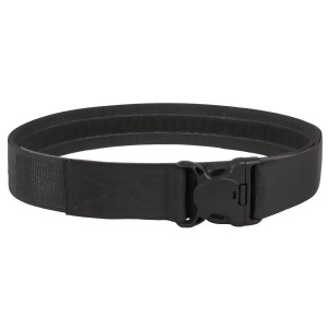 Duty Belt The Elite Duty Belt is constructed of double layer nylon webbing with contoured side-release locking buckle and is fully adjustable. A hook and loop lining to mate with inner belts is included. SpecificationsFinish: BlackSize: MediumBelt Size: 2 in.Gender: UnisexCountry of Origin: United States of AmericaWeight: 2 lbs