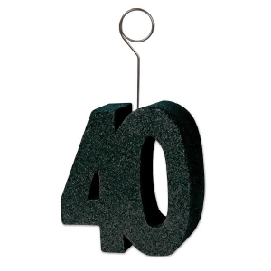 Bring a touch of glitzy charm to your 40th anniversary or birthday party with these glittering black "40" photo, balloon or place card holders or centerpieces Features: Each holder features the number "40" in black glittered lettering Perfect for anniversary parties, birthday parties, reunions or any other special occasion Recommended for indoor or outdoor use Material s : polystone/metal Pack includes 6 of the item shown