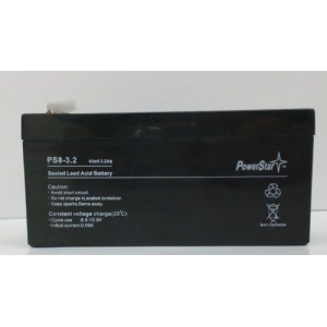 Power-Star batteries are classified as "Non-Spillable" and will meet all requirements of the International Air Transport Association. Absorptive Glass Mat System AGM System Power-Star batteries make use of fine mat separators glass fiber wherein sufficient electrolyte is absorbed to provide the longest life and steady service. This system prevents escape of electrolyte from the separator which causes leakage. Gas Recombination Power-Star batteries incorporated unique design that effectively controls generation of gas and allows recombination of over 90% of gas generated during the normal use. Maintenance-Free Operation During the expected floating service life of Power-Star batteries, there is no need to check the specific gravity of the electrolyte or add water, which means they require no maintenance service. In fact, there is no provision for these maintenance functions. Position-Free and Leakage-Free the combination of the sealed construction and the use of absorptive mat separators permit operation off Power-Star batteries in any position without loss of capacity, electrolyte and service lifeFeaturesSealed Construction Power-Stars's unique construction and sealing technique ensure that no electrolyte leakage can occur from the terminals or case of any Power-Star battery.This feature insures safe, efficient operation of Power-Star's batteries in any position.Voltage - 8VCapacity - 3.2AhDimension - 5.12 x 2.5 x 2.5 in.