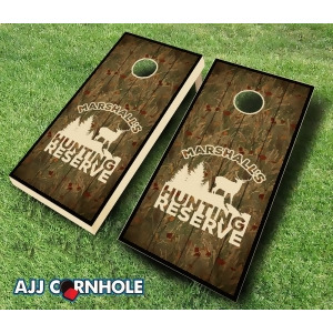AJJCornhole manufactures high quality cornhole board and cornhole bag sets. Our boards are made to be durable, inexpensive, and creative. We offer a wide range of cornhole sets and accessories that are creative as well as add value. FeaturesHunting Reserve Cornhole Set comes with 4 red and 4 royal blue cornhole bagsSet measures 4 feet long by 2 feet wideReady to play right out of the boxHunting Reserve design is printed vinyl and finished with a clear coat of polyurethane to protect your boards for years of cornhole!SpecificationsDimension: 8 H x 24 W x 48 LWeight: 65 lbs