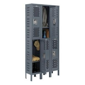 Global Heavy-Duty Ventilated Steel Lockers Combine Security, Visibility And Maximum Air Circulation For Gym, School, Warehouse And Breakroom Storage. Ventilated lockers are made using heavy 16 gauge steel with diamond shaped perforations for improved airflow. Locker doors feature rubber bumpers on framing to ensure quiet operation. Continuous piano hinges provide maximum security. Recessed handle and finger-lift control creates a clean, neat appearance. Lockers include blank number plates. Gray Powder coat color finishes. Steel lockers feature finished sides; no need for decorative end panels. Double Tier Steel Gym Lockers have secure 2-point positive locking system, stainless steel door latch and double and single-prong coat hooks. Features3 Wide & Double Tier Infinity Heavy Duty Ventilated Steel LockerSpecificationsColor: GrayConstruction: SteelAssembly: AssembledDimension: 12 x 18 x 36 Weight: 242.55 lbs