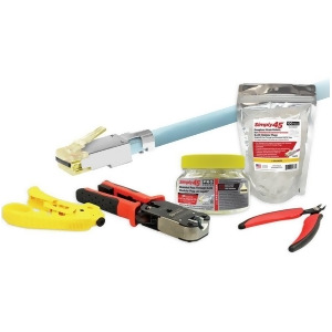 Simply45S45-PSK10Gis a ProSeries Pass-Through 10G STP Starter Kit. This starter kit includes the S45-1755P ProSeries 10G shielded external ground with pass-through RJ45 Cap45 & Bar45, S45-801 Premium 5 flush cutter tool, S45-B003 strain reliefs for the Simply45 shielded external ground for pass-Through & standard RJ45, S45-C101 Simply45 ProSeries All-In-One RJ45 crimp tool, and the S45-S01YL yellow adjustable LAN cable stripper for shielded & unshielded Cat7a,6a,6,5e. S45-1755P Pass-Through RJ45 Modular Plugsare by far the highest performing, easiest to use, and most cost-effective way to professionally terminate 10G Shielded and other large diameter shielded LAN cable. FeaturesS45-C101 CrimperCrimps Both Pass-Through and Standard WE,SS Shielded RJ45 Modular PlugsS45-801 Premium 5 Flush Cutter ToolProfessionally Trim LAN Cable WiresS45-S01YL Adjustable LAN Cable Stripper for Shielded & Unshielded Cat7a,6a,6,5eWorks great for Plenum, LSZH, PE & PVC cable jackets S45-B003 Simply45 Snagless Strain Reliefs0.33 8.5mm snagless strain relief for use with larger diameter shielded LAN cablesSpecificationsType: RJ45 MaleQuantity: 50Contact Plating: 50 GoldContact Material: BronzeShielded: YesConductor Diameter: 0 / 1.2 mmContact Resistance: 20 milliohmsSupported Cable Diameter: 0.3 / 8 mmWire Gauge Supported: 23 to 23 AWGCable Types Supported: Solid, StrandedNetworking Type: Cat 6a, Cat 7, Cat 7aPlug Material: PolycarbonateCompliance: cUL, RoHS, FCCFlame Resistance Rating: UL94V-0Mating Cycles: 2000Operating Temperature: -40 to 158F -40 to 70C Weight: 2.6 lbs