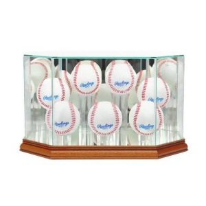 FeaturesThe 7 Ball Baseball Octagon Display Case with mirror on the bottom and back to give a complete view of your autographed baseballs.This case is UV protect and is supported by beautiful real wood moulding.Our adhesives contain no acids that may deteriorate signatures.This case can hold between 7 and 9 autographed baseballs.Color - Walnut.