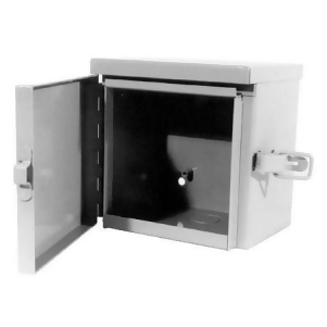 Features Designed for use as a telephone cabinet, panel enclosure, or junction boxFor outdoor use to provide protection against rain, sleet, or snow, or indoors where dripping water is a problemEnclosure and cover are manufactured from 16, 14, 12, or 11 gauge g90 galvanized steelThe cover is mounted on galvanized lift-off hinges with stainless steel hinge pins cover is fastened with a padlockable draw latchPanel mounting studs provided for optional back panelEmbossed mounting holes on backNo knockouts providedDrip shield top and seam-free sides, front and backSpecifications Dimension: 16 x 16 x 6 Weight: 18 lbs