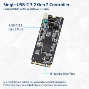 The new ASM3124 doesn't just deliver the fastest USB 3.1 performance. It also reduces power consumption by as much as 50%. When compared with a Gen3 x1 connected controller, the AS3124 can deliver double the performance. FeaturesUSB 3.2 Gen 2 10 Gbps 1-Port Type-C M.2 22x60 B Plus M key Controller CardSpecificationsWeight: 0.24 lbs