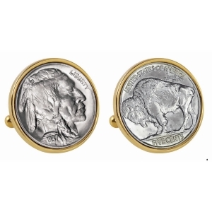 Cufflinks can add an elegant and stylish statement to a man's attire as well as injecting a bit of personality. Our goldtone classic bezel coin cuff links include genuine U.S. coins encircled by a simple yet sophisticated setting that will make your cuffs a great conversation starter at your social event. The Buffalo Nickel was first released into circulation on March 4, 1913 and composed of copper and nickel. The design was created to enhance the beauty of American coinage. The designer James Earle Fraser wanted to create something totally American and therefore decided upon the Buffalo which was unique and a large part of our western states heritage. The Native American Indian also fit right into his idea. Fraser claims he used several composites to draw the portrait of the Native American Indian Head which is on the obverse of the coin. Fraser said the reverse design was modeled after Black Diamond, a bison at the Bronx Zoo. But historians claim Black Diamond was never at the Bronx Zoo but was housed at the Central Park Zoo. Another bison, Bronx, was the leader of the herd at the Bronx Zoo. The placement of the horns on the nickel differ greatly from that of Black Diamond leaving one to wonder if he was the model. The American public deemed to call it the Buffalo Nickel since its first release in 1913. The Buffalo or Indian Head nickel was last minted in 1938. These coin cuff links have bullet back closures making them very easy to put on. FeaturesGenuine US coinBuffalo nickel minted 1913-1938Clean stylish bezelBullet back closureIncludes a certificate of authenticity and 1 year manufacturer warrantySpecificationsWeight: 0.3 lbs