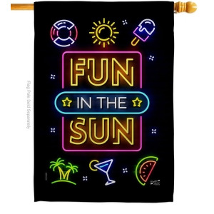 Angeleno Heritage have variety of House Flag for all occasions. Uniquely design for hanging indoor or outdoor use. We are committed to offering you exceptional values. Our customers enjoy displaying our House Flag for longer periods. For more than a decade, we ve been dedicated to manufacturing flags with no comparison in quality and beautiful designs. Our flags are made with our Pro Guard material that is soft to the touch and designs can be read correctly on the flag. A feature that our customers will love. We are committed to using eco-friendly inks that won t leave a foot print in our environment. FeaturesFun In The Sun Beautiful Large House FlagProudly Made in USAInclude:1 pc x House Flag 28" x 40" Package Decorative FlagsSpecificationsTheme: Fun In The SunPrint: Double-SidedMaterial: Weather Resistant 3 Layers BlockoutReadable: Readable Both SidesStitching: Double StitchedDisplay: VerticalHang Type: SleeveArtist: Amerie RobbinsSize: 28" x 40"Country of Origin: USAWeight: 0.49 lbs