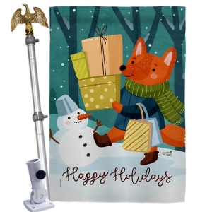 Angeleno Heritage have variety of House Flag Set for all occasions. Uniquely design for hanging indoor or outdoor use. We are committed to offering you exceptional values. Our customers enjoy displaying our House Flag Set for longer periods. For more than a decade, weve been dedicated to manufacturing flags with no comparison in quality and beautiful designs. Our flags are made with our Pro Guard material that is soft to the touch and designs can be read correctly on the flag. A feature that our customers will love. We are committed to using eco-friendly inks that wont leave a foot print in our environment. FeaturesWinter Wonderland Beautiful Large House Flag, Wooden Flagpole And Bracket Wall Mount Complete Set Gold Eagle Aluminum 6' FlagPole with Metal HolderReady for Holiday House Flag Set Wintertime Winter Wonderland Double-Sided Decorative Vertical Flags Decoration Banner Garden Yard GiftSpecificationsTheme: Winter WonderlandSize: 28" x 40"Style: Decorative FlagPole With Adjustable Angle Flag BracketPrint: Double-SidedReadable: Readable Both SidesMaterial: Weather Resistant 3 Layers BlockoutStitching: Double StitchedDisplay: VerticalHang Type: SleeveArtist: Rose GordonCountry of Origin: United States of AmericaWeight: 2.42 lbs