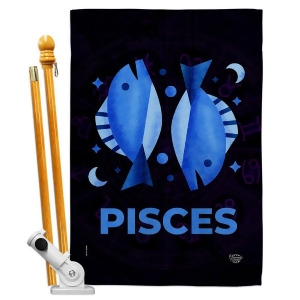 Ornament Collection have variety of House Flag Set for all occasions. Uniquely design for hanging indoor or outdoor use. We are committed to offering you exceptional values. Our customers enjoy displaying our House Flag Set for longer periods. For more than a decade, weve been dedicated to manufacturing flags with no comparison in quality and beautiful designs. Our flags are made with our Pro Guard material that is soft to the touch and designs can be read correctly on the flag. A feature that our customers will love. We are committed to using eco-friendly inks that wont leave a foot print in our environment. FeaturesHobbies Beautiful Large House Flag, Wooden Flagpole And Bracket Wall Mount Complete SetPisces House Flag Set Interests Zodiac Double-Sided Decorative Vertical Flags Decoration Banner Garden Yard GiftSpecificationsTheme: HobbiesSize: 28" x 40"Style: Decorative FlagPole With Adjustable Angle Flag BracketPrint: Double-SidedReadable: Readable Both SidesMaterial: Weather Resistant 3 Layers BlockoutStitching: Double StitchedDisplay: VerticalHang Type: SleeveArtist: Eva LeeCountry of Origin: United States of America
