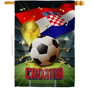 Ornament Collection have variety of home decoration for all occasions. Uniquely design for hanging indoor or outdoor use. SpecificationsColor: Multi ColorSize: 28 x 40 in.Theme: SoccerPrint: Double-SidedReadable: Readable Both SidesMaterial: Weather Resistant - Thick FabricStitching: Double StitchedDisplay: VerticalArtist: Jay ConnorCountry of Origin: USAWeight: 0.49 lbs