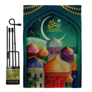 Ramadan Beautiful Mini Garden Decorative Flag with Banner Flagpole - Complete Set with Power Coated Metal Flag Stand. Ornament Collection have variety of home decoration for all occasions. Uniquely design for hanging indoor or outdoor use. We are committed to offering you exceptional values. Our customers enjoy displaying our yard banner sign for longer periods. For more than a decade, weve been dedicated to manufacturing flags with no comparison in quality and beautiful designs. Our flags are made with our Pro Guard material that is soft to the touch and designs can be read correctly on the flag. A feature that our customers will love. We are committed to using eco-friendly inks that wont leave a foot print in our environment. FeaturesHappy Ramadan Kareem Garden Flag Set Religious 13 x 18.5 in. Double-Sided Decorative Vertical Flags House Decoration Banner Yard GiftMade in USAIncludes:1 pc x Mini Garden Flag 13" x 18.5"1 pc x 16" x 40"Metal Yard Banner HardwareSpecificationsTheme: RamadanPrint: Double-SidedReadable: Readable Both SidesMaterial: Weather Resistant - Double BurlapStitching: Double StitchedDisplay: VerticalHang Type: SleeveArtist: Ava StoreyCountry of Origin: USASize: 13 x 18.5. in.Weight: 1.06 lbs