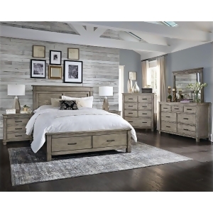 A-America Glacier Point 5 Piece Storage Bedroom Set in Greystone 5 Piece Storage Bedroom Set in Greystone In The Glacier Point Collection By A-America. Rustic made refined. The Glacier Point bedroom set is crafted from solid reclaimed pine. Each piece is carefully designed with function and style. This collection embraces a minimalist approach and the perfect shade of sophisticated grays. Functionality is a highlight with ample storage in the solid drawer boxes constructed with ball bearing drawer glides. The nightsands have been designed with the modern convenience of USB charging ports. Available with storage or non-storage bed frames, the Glacier Point bedroom allows you to create a space that is soothing and transitional with a designer look. Top 5 Reasons to Choose the Glacier Point Bedroom Collection: 1: Solid Wood Furniture: The Glacier Point Bedroom Collection is constructed from Solid Reclaimed Pine. 2: No MDF or particle Board: Does not contain these inferior components that are found in most furniture today. 3: Kiln-Dried Hardwood: This process establishes Moisture Content Uniformity and prevents warping, cracking, and splitting. 4: 5-step Finish: The Gray Stone Finish enhances the natural wood grain and provides a clean, warm radiance to this collection. 5: Versatile Transitional Design: Sweeping design elements add visual interest to create a transitional collection that coordinates with a wide range of home decors. PLUS: Full Extension Metal Glides Oxidized Iron Metal Drawer Pulls English Dovetail ConstructionIncludes: Bed 1 ,Nightstand 2 ,Chest 1 ,Dresser w/Mirror 1 Glacier Point Storage Bed in Greystone Rustic made refined. The Glacier Point bedroom set is crafted from solid reclaimed pine. Each piece is carefully designed with function and style. This collection embraces a minimalist approach and the perfect sha