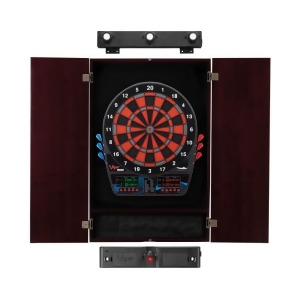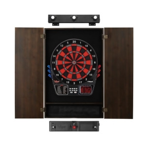 Shoot for victory with the Viper Orion Electronic Dartboard, Metropolitan Mahogany Cabinet, Throw Line Light & Shadow Buster Dartboard Light Bundle! This hi-tech bundle boasts the latest innovations in competitive darts and is sure to bring your game out of this world! Measuring in at standard 15.5 in. tournament quality regulation size, the Orion Dartboard stands out from other boards in that it comes equipped with two scoring displays that can show the scores of four players at a time. It has a wide variety of games and scoring options programmed into it and can accommodate up to eight players, allowing you to bring all your friends with you on your voyage to darts glory. The Target Tested Tough segments of the Orion feature concave segment holes to lock in your shots and keep the material intact, while the board's ultra-thin spider keeps bounce-outs to a minimum. The Metropolitan Cabinet containing the board is constructed from solid pine and held together via box joints; its back is reinforced with thick black cloth to protect your wall from punctures. The doors of the cabinet are fitted with self-closing brushed nickel hinges. Darts and other accessories can be stored in the dart caddy below the board area. The Shadow Buster illuminates your dartboard from above, making it and all of your targets visible in any rec room at any time. It also flips up when not in use and runs on four AA batteries. With the Throw Line Light, the need for adhesive throw lines or dartboard mats is eliminated at the mere push of a button. This accessory shines a concentrated beam of light onto your floor to mark your throw line, which can then be adjusted to shine at various points across the room. Features15.5 in. Electronic dartboard comes with two LCD displays, six soft tip darts, Metropolitan Mahogany Cabinet, Shadow Buster Dartboard Light and Laser Throw LinePrecision-engineered concave segment holes prevent both bounce-outs and damage to the boardFeatures 43 games, over 300 scoring options, and can accommodate up to eight playersDartboard light flips up when not in use so doors can close fullyBox joints provide the solid pine cabinet with increased durabilityExtra darts and accessories can be held in the lower compartmentAdjustable laser creates a throw line by shining a light beam onto your floorSpecificationsColor: Black
