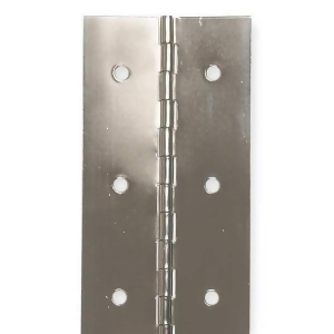 Piano Hinge, Ligature Resistant No, Stainless Steel Material, 180 Degrees Range of Motion, Stainless Steel Finish, With Holes, Non Handed Orientation, 1/2 in Overall Knuckle Height, 72 in Door Leaf Height, 72 in Frame Leaf Height, 1 in Door Leaf Width, 1 in Frame Leaf Width, 0.06 in Door Leaf Thickness, 0.06 in Frame Leaf Thickness, Length 6 ft, Not Included Hardware, 2 in Hole Spacing, 36 Holes per Leaf, Full Surface Mounting, 1/8 in Pin Dia., Steel Pin Material, Nonremovable Pin Type