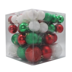 This 62 piece red, green and white ball ornament kit has everything you need. Hang them on your Christmas tree, around your home, or in your office. They come in a shiny, rugged and matte finish. FeaturesBall OrnamentsPack of 62SpecificationsColor: Red, Green & WhiteWeight: 4 lbs