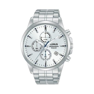 This Lorus RM383H chronograph men's watch features stainless steel case and bracelet, lumibrite display, screw case back and water resistant of 100M. Perfect gift for any watch enthusiast. Movement: Japanese Quartz MovementWater resistant: 100 meters / 330 ft.Case size: 43 mmCase material: Stainless SteelCase color: SilverDial color: SilverBand material: Stainless SteelBand color: Silver