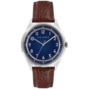 The Ted Baker watch collection features a range of styles, from classic and sophisticated to contemporary and bold. The watches often incorporate unique details and accents, such as floral patterns, geometric shapes, or colorful straps, which reflect the brand's distinctive aesthetic. Ted Baker watches are typically made with stainless steel cases and quartz movements for accurate timekeeping. They come in various sizes to cater to different preferences and are often finished with mineral or sapphire crystal for durability and scratch resistance. FeaturesQuartz movementMineral crystal faceWater resistantSpecificationsCase Material: Stainless SteelCollection Name: DaiquiriDial Color: BlueDial Diameter: 40 mmDial Shape: RoundDial Type: European NumbersFunctionality: Plain 3-handMovement: QuartzStrap Color: BrownStrap Type: Genuine LeatherWatch Glass/crystal: Mineral GlassWater Resistance: 50 m