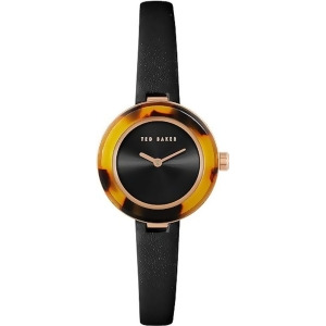 The Ted Baker watch collection features a range of styles, from classic and sophisticated to contemporary and bold. The watches often incorporate unique details and accents, such as floral patterns, geometric shapes, or colorful straps, which reflect the brand's distinctive aesthetic. Ted Baker watches are typically made with stainless steel cases and quartz movements for accurate timekeeping. They come in various sizes to cater to different preferences and are often finished with mineral or sapphire crystal for durability and scratch resistance. FeaturesQuartz movementMineral crystal faceWater resistantSpecificationsCase Color: Rose GoldCase Material: Stainless SteelClasp Type: BuckleDial Color: BlackDisplay: AnalogGender: WomensHand Color: GoldMovement: QuartzStrap Color: BlackStrap Material: LeatherWatch Shape: RoundWatch Style: DressWater Resistant: 30 m/100 ft.Case Size: 28 mmStrap Length: 7in